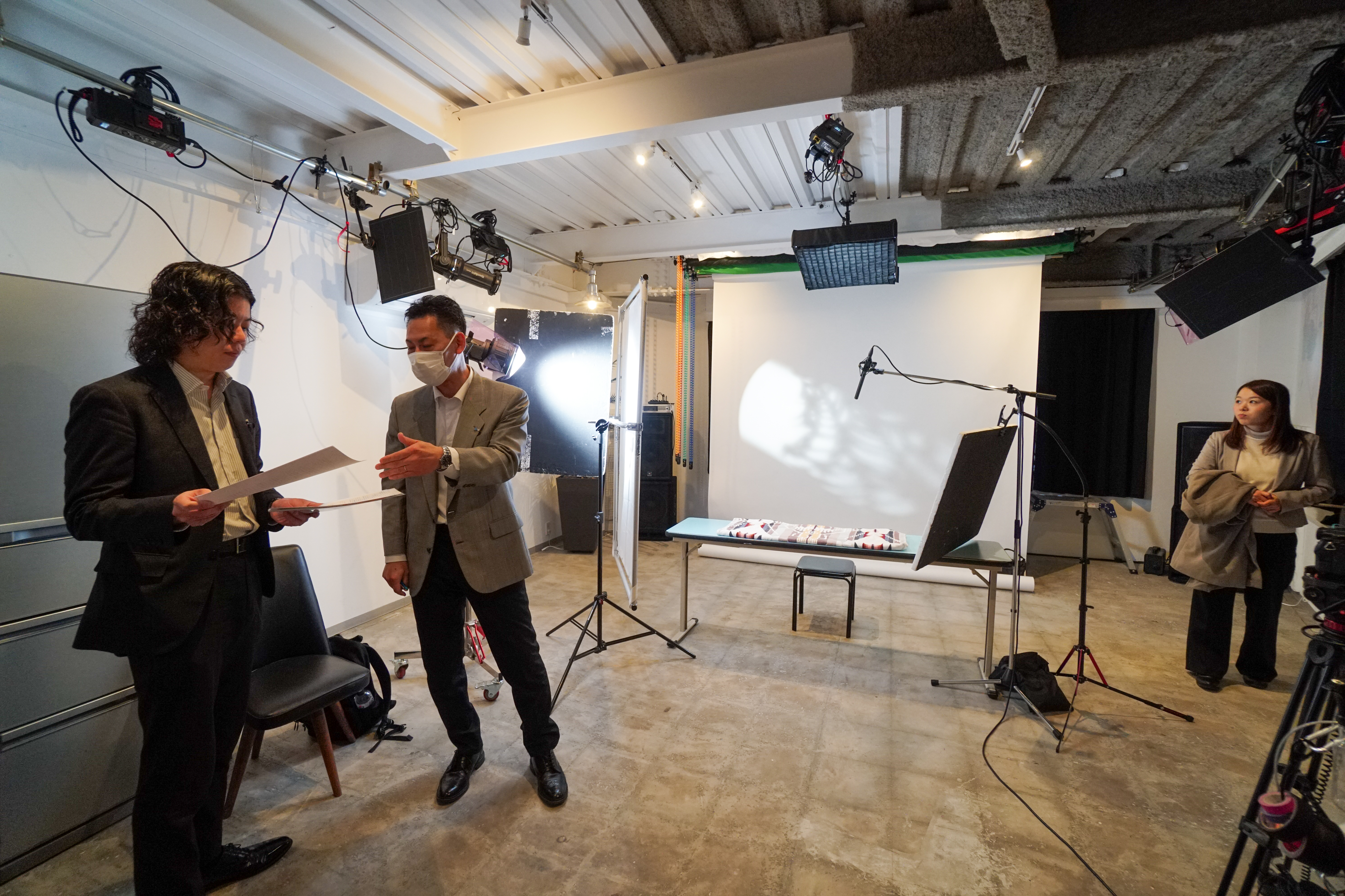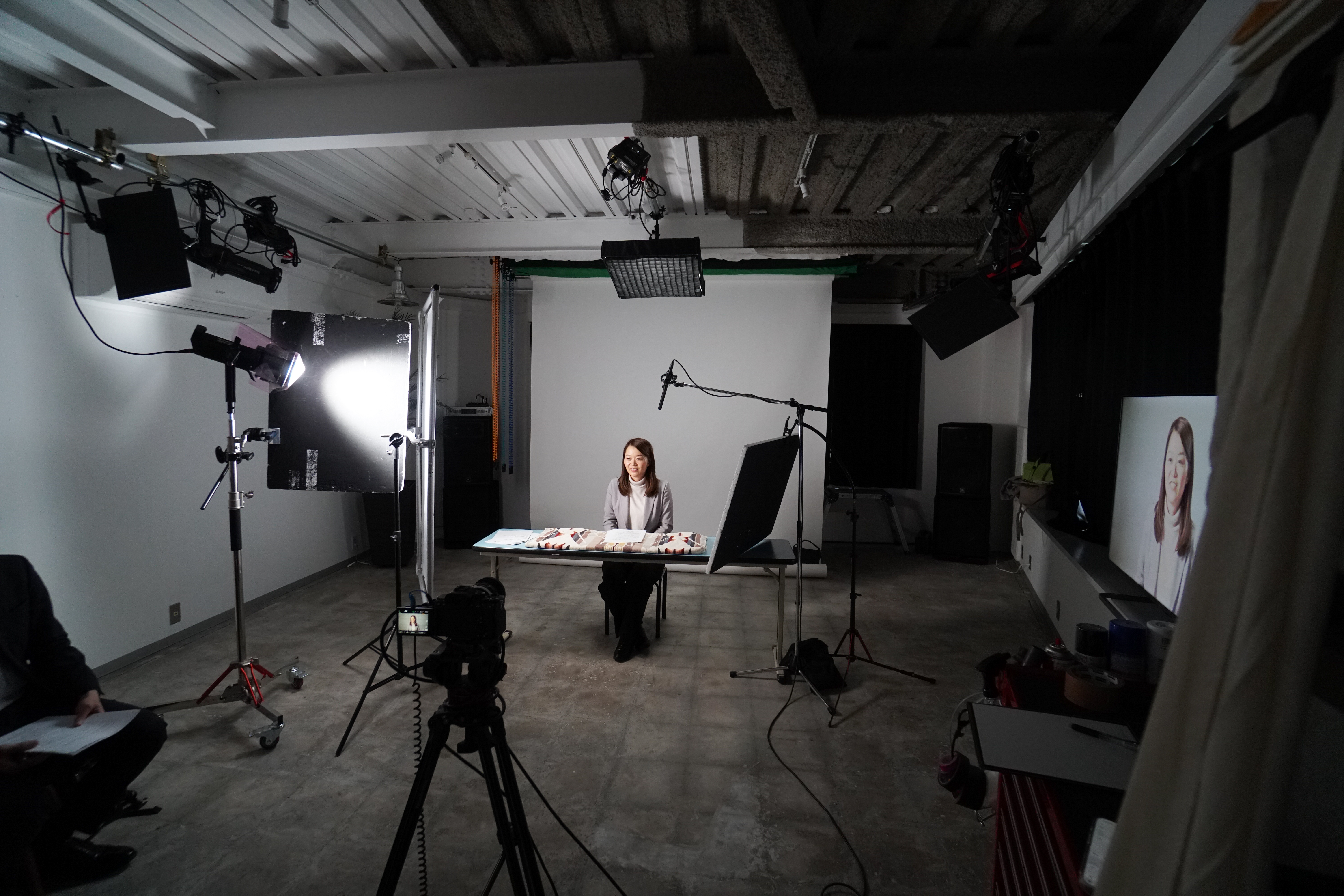 完全屋内型の自社スタジオでは、光の強さ・角度・音環境までコントロール可能。天候・時間帯・外音に左右されずに撮影を進行できるため、インタビューや商品撮影など、繊細な映像制作にも安心して対応できます。